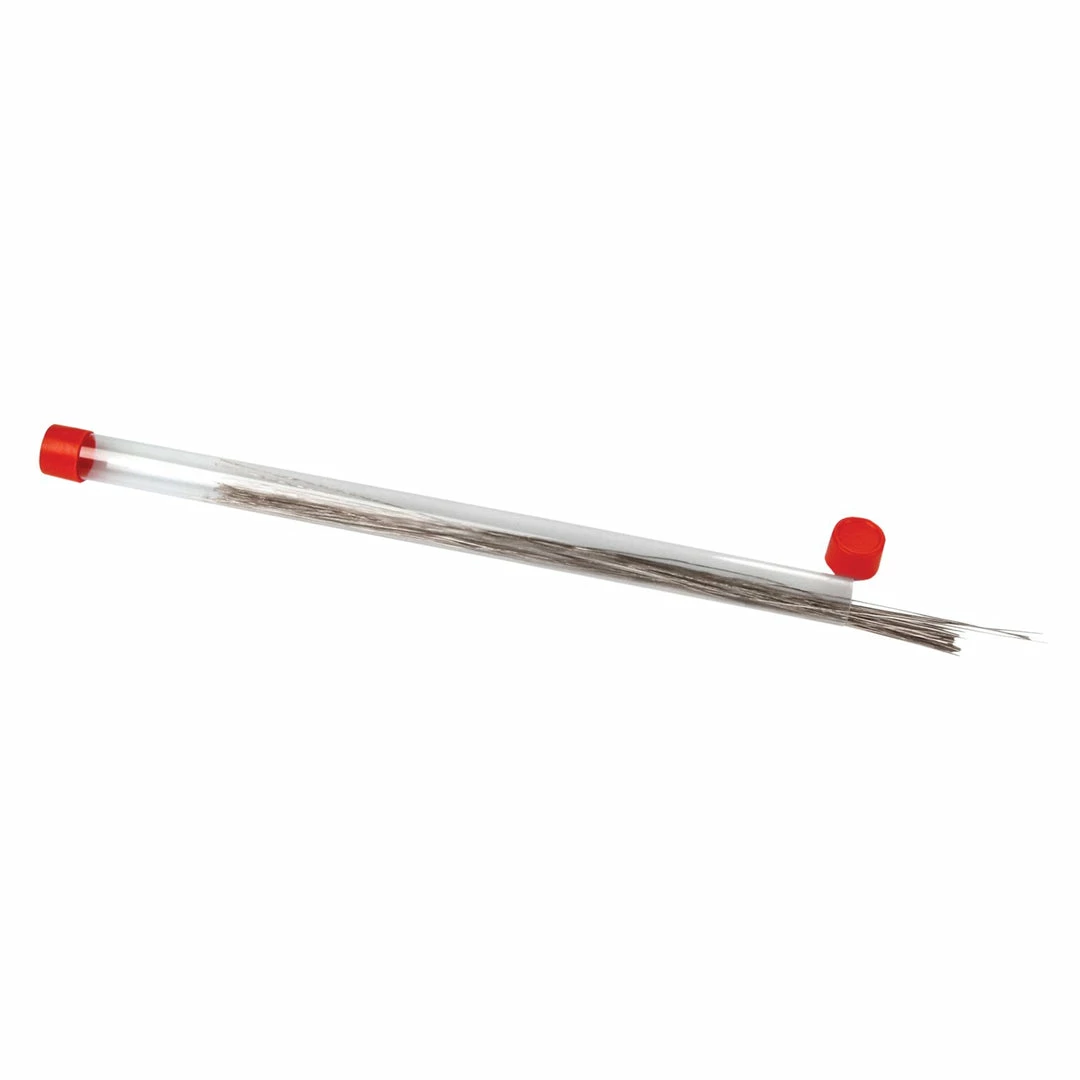 Soft rigging wire, ideal for sewing bait or rigging Ballyhoo. Fifty pieces of 9″ or 14″ wire in a plastic tube.