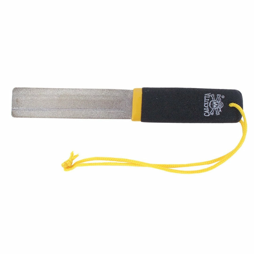 6″ File features a rubber comfort handle, lanyard, hook hone channel and double sided diamond grit 120 and 240.