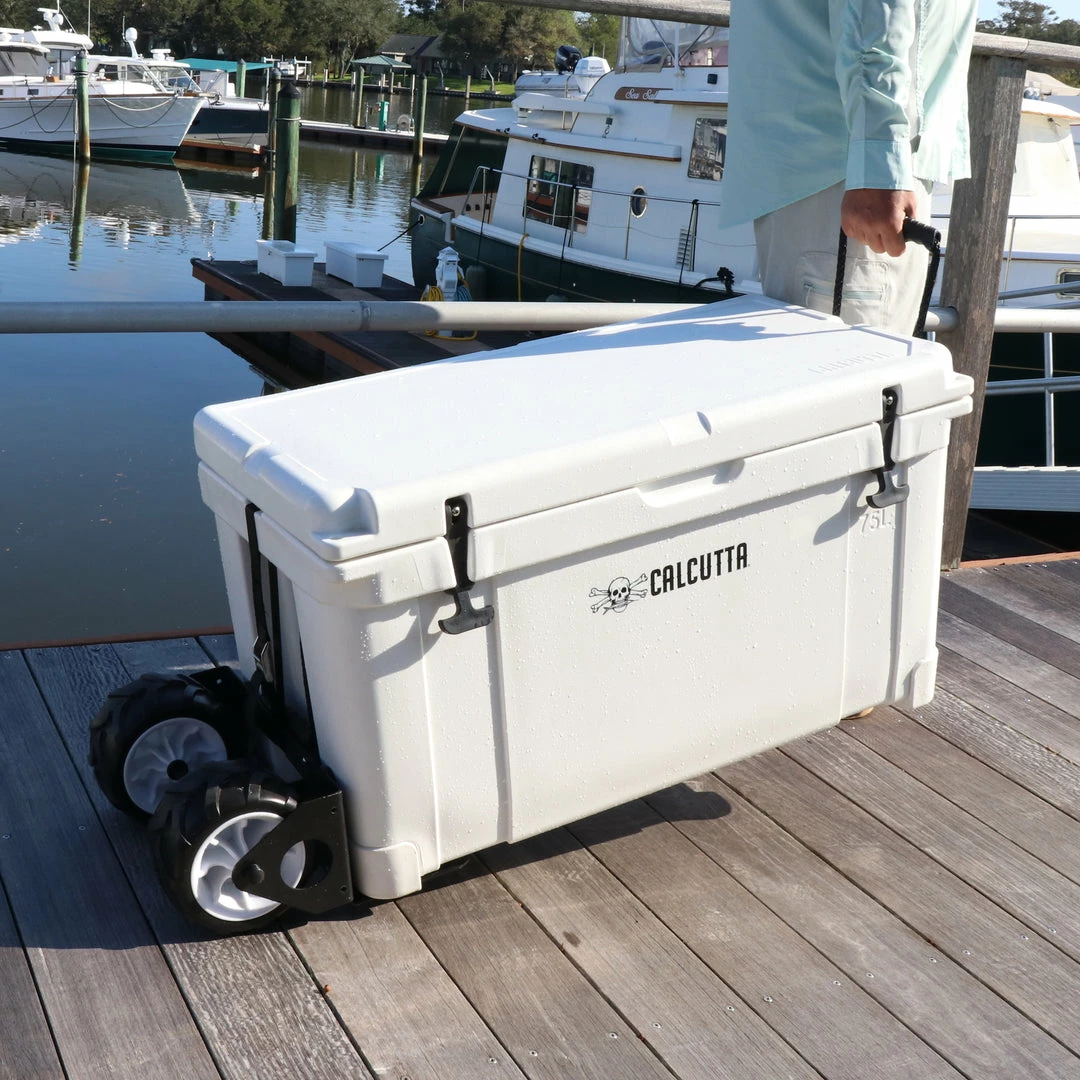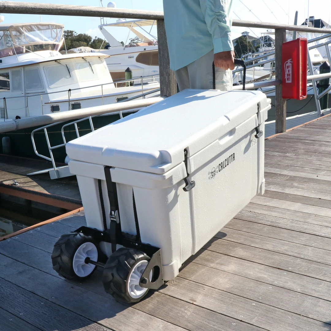 The Calcutta Universal Cooler Cart Wheel Kit is made for easy installation and quickly transforms most brands of high-performance coolers from unmovable to mobile. It’s perfect for use on your next weekend adventure, tailgate party or fishing trip. The kit includes two 7 inch never-flat tires, rubber cushions to protect your cooler and all the necessary hardware. Install in minutes and best of all, no more asking your friends for a help carrying your cooler.