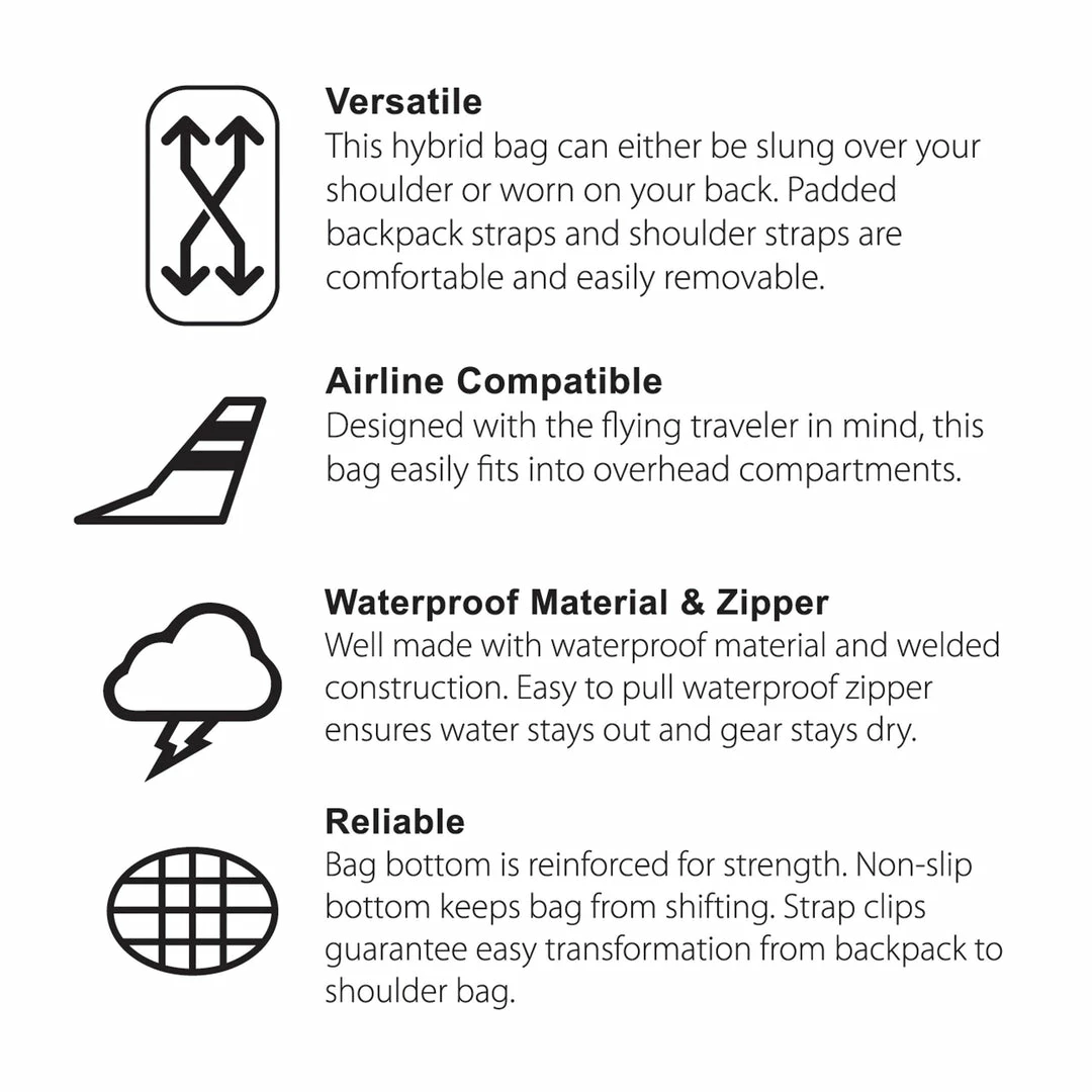 - Waterproof main compartment zipper with oversized pull