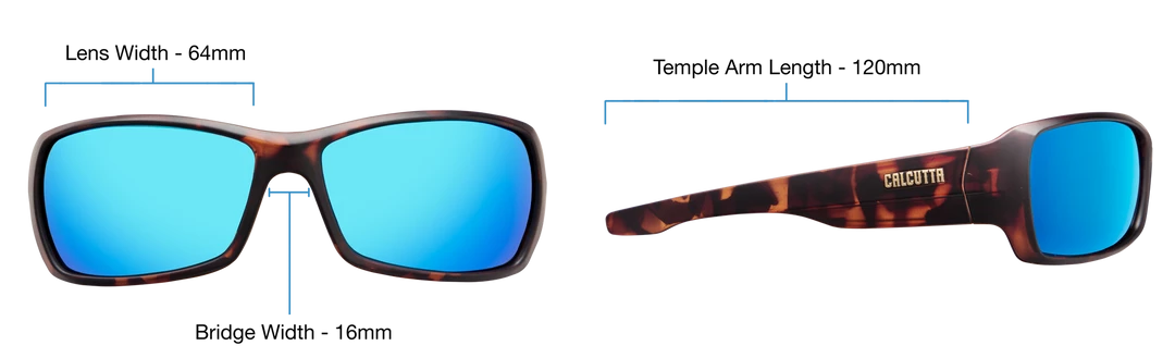 Sizing: Lens Width 64mm, Bridge Width 16mm, Arm Length 120mm