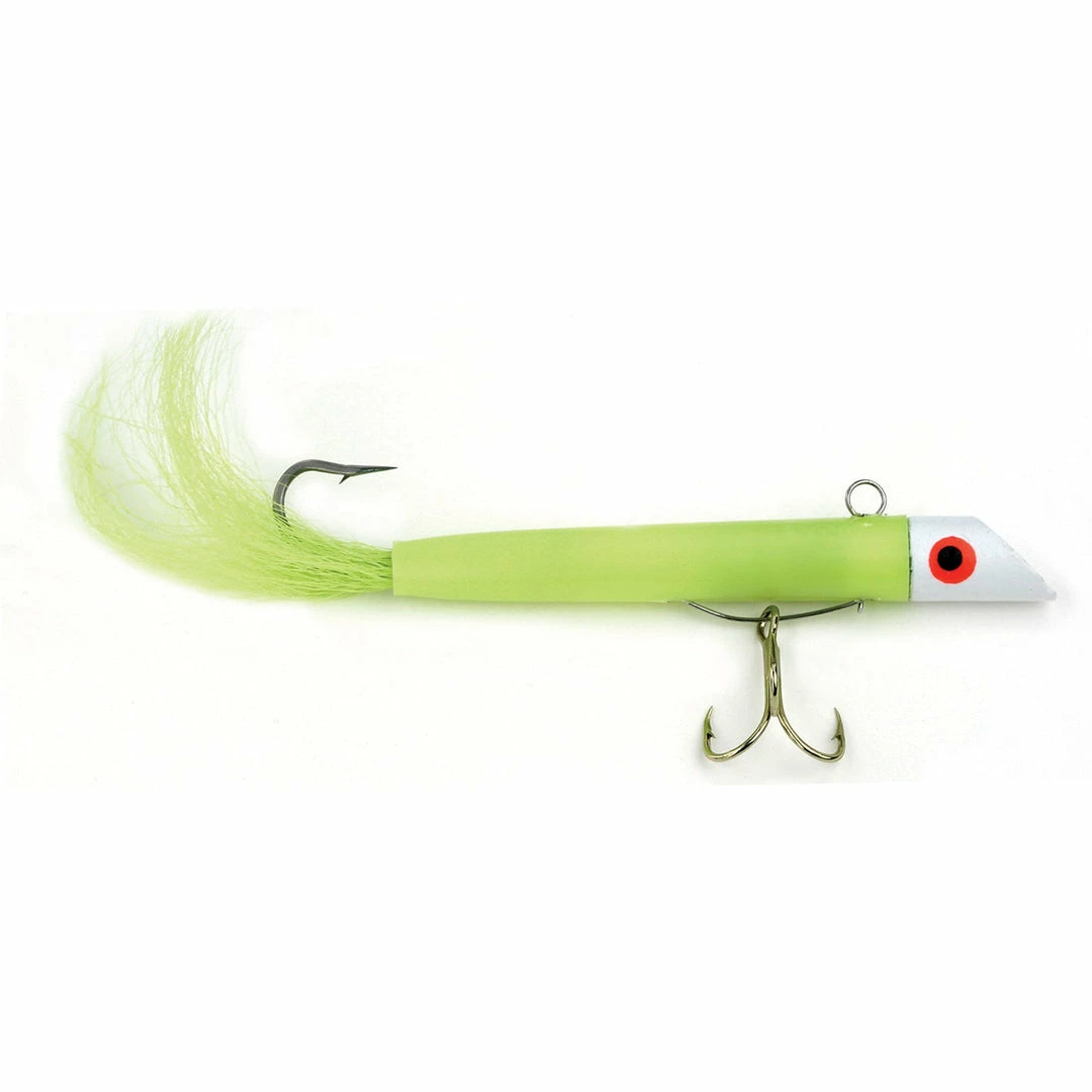 The ORIGINAL GOT-CHA lure is a tried and true fishing lure. These lures are excellent for Bluefish, Spanish Mackerel, Trout, and any fish that feed on small bait fish. The 100 Series w/ bucktail has 1oz plastic body, 2/0 single tail hook woth bucktail, #4 belly hook and is 3″ in length.