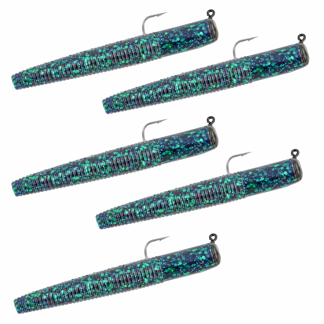 - Weedless rigs are packed 4/pack, non-weedless hooks 5/pack