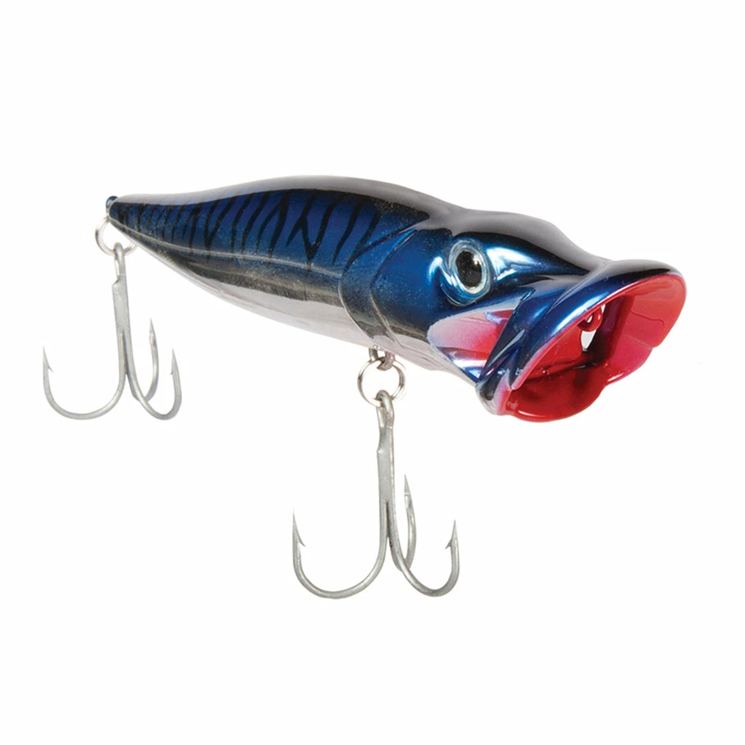All poppers feature premium saltwater-resistant hooks and quality wire-through construction for maximum strength. Internal rattles make for irresistible fish-attracting sounds, while life-like eyes create a realistic look. A wide mouth allows for that classic ‘popping’ action and splash.