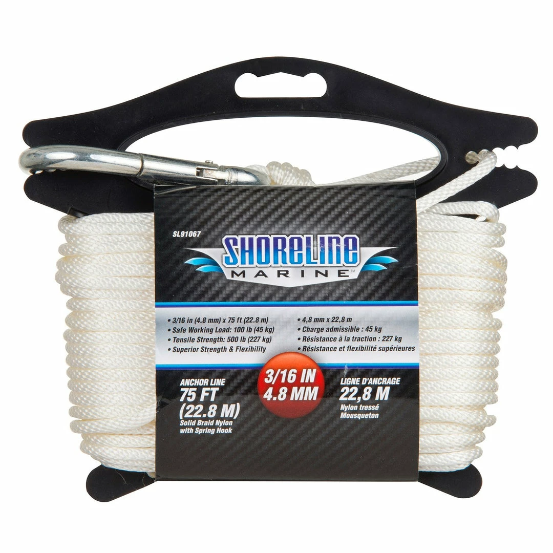 Solid braid has a smooth round firm contour that holds it shape under pressure. Comes with spring hook. Excellent for pulleys or winches.