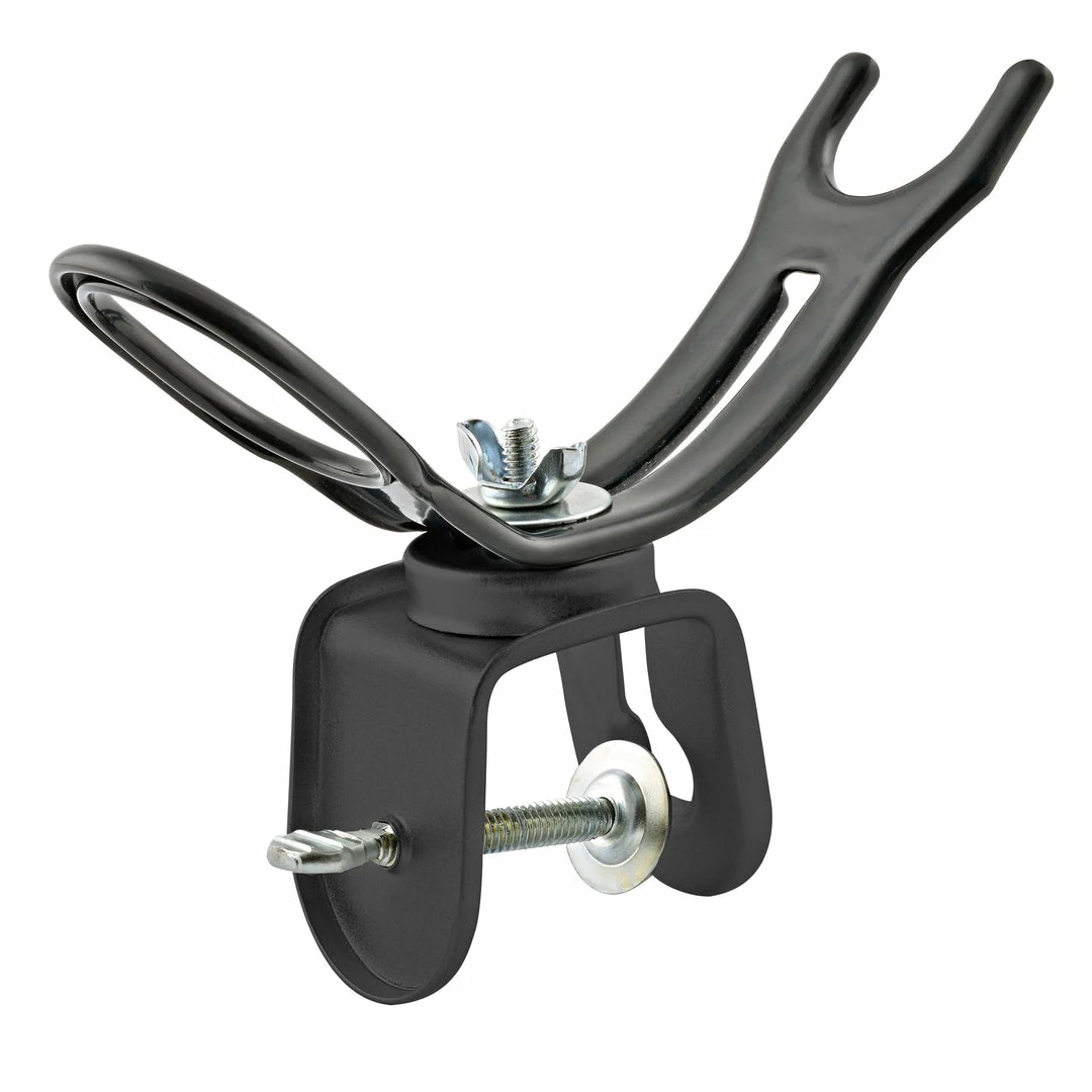 The Clamp-on Rod Holder easily clamps on boats or piers and holds all styles of rods, including pistol grip models. Features tough enameled finish and heavy duty material. Adjustable rod rest position.